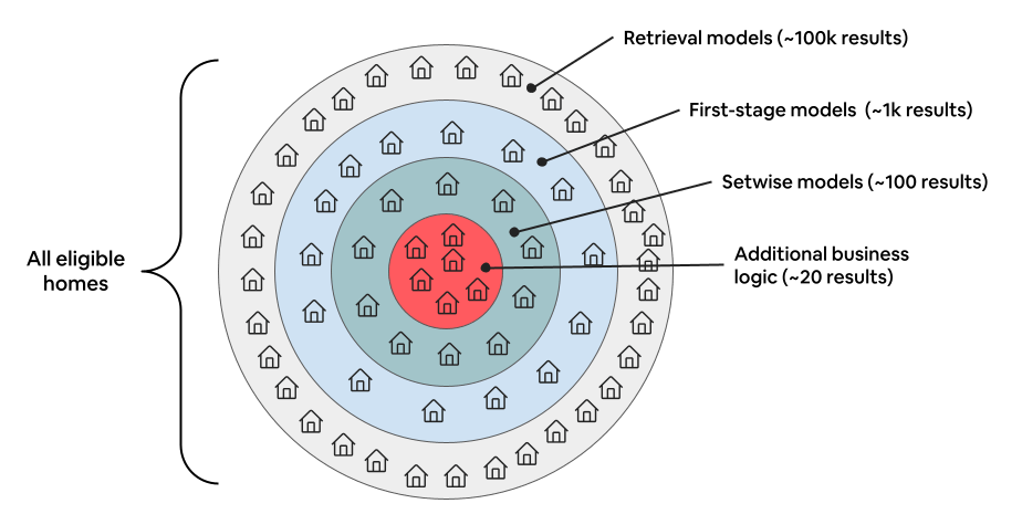 Figure 1: The general stages and scale for the various types of ranking models used in Airbnb Search