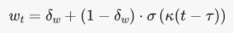 - A logistic gate function governing the timing and speed of the transition, allowing for shifts over time rather than instantaneous jumps.